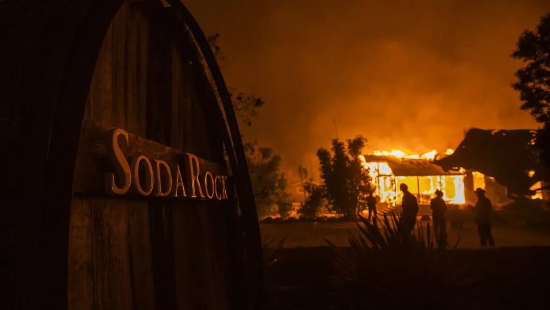 這張圖片不是在拍好萊塢大片,而是加州的Soda Rock 酒莊在本次加州大火中被吞噬的景象。