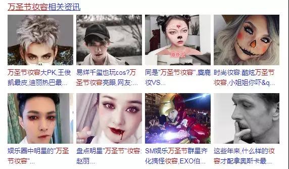 至于妝容怎么畫?大家可以在網(wǎng)上搜“萬(wàn)圣節(jié)妝容”,就會(huì)有很多創(chuàng)意造型,隨便模仿一下就能吸睛無(wú)數(shù)。