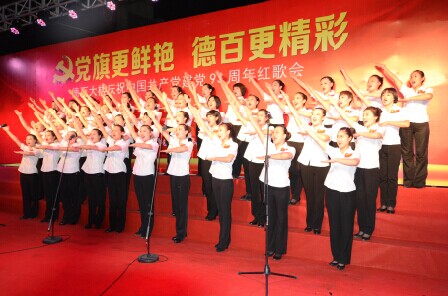 《沒(méi)有共產(chǎn)黨就沒(méi)有新中國(guó)》、《團(tuán)結(jié)就是力量》、《走向復(fù)興》等一曲曲經(jīng)典的紅色旋律激起了全體德百員工的共鳴,抒發(fā)了廣大員工熱愛(ài)黨、熱愛(ài)祖國(guó)、熱愛(ài)企業(yè)的紅色情懷,充分展示了德百人積極向上、昂揚(yáng)奮進(jìn)的良好精神風(fēng)貌,深刻表達(dá)了對(duì)黨、對(duì)祖國(guó)母親的無(wú)限熱愛(ài)和美好的祝福。