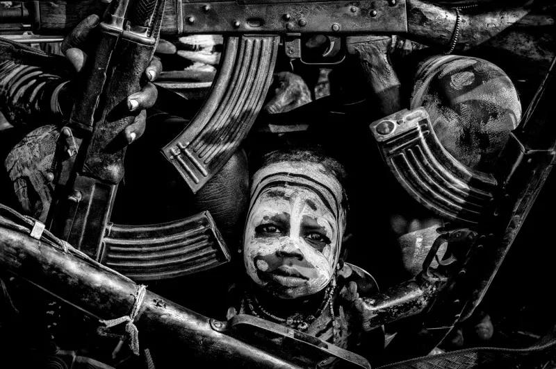 當他把鏡頭對準其中一名士兵的時候,在圍觀的人群中突然間鉆出來一個小男孩,試圖撿回他掉出去的球。利比里亞經歷了多年的內戰,這個小男孩在戰爭中長大,他本能地害怕士兵和他們手中的槍。他想要把自己寶貴的球撿回來,然而他的眼睛卻一直緊緊盯著前面的士兵。