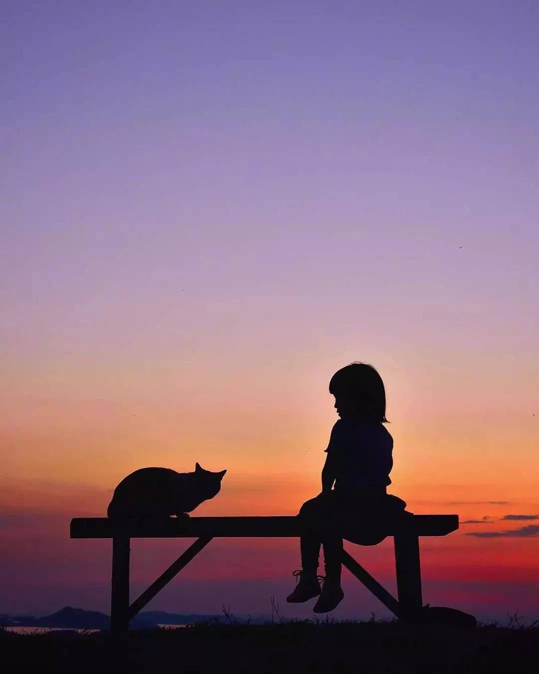 在夢幻般的風景下,孩子的背影或者剪影成為了畫面的視覺焦點,這是梶原紀之作品的最大特點。