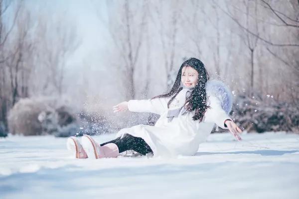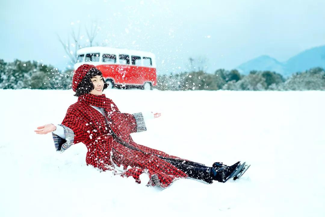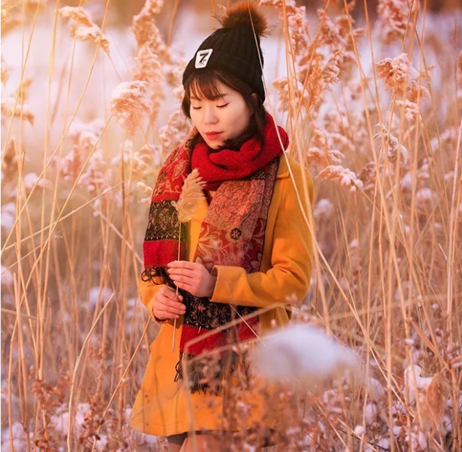 萬物都進入冬眠期,周圍風景的色彩也相對比較單調,特別是在剛下過雪的天氣里,到處都是白茫茫的一片,想要拍出唯美的人像,最好穿鮮艷一點的衣服。