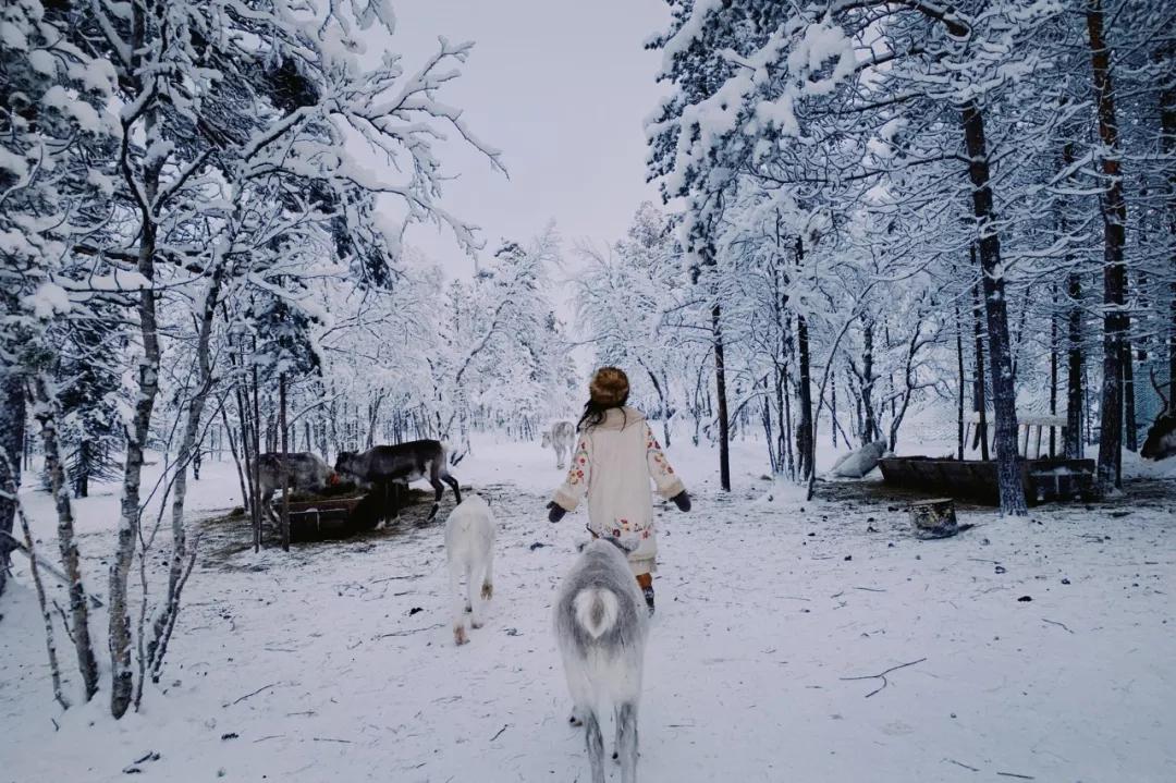 沒有勇氣露臉?那就拍個背影好了,帶上你的寵物,盡情在雪地里奔跑吧。