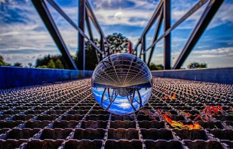 最后這張照片是利用了一個水晶球,通過了低角度拍攝有線條,有節奏的鋼鐵結構。我們就在一些場景中,用水晶球去營造一些特殊的效果,就不用后期做這個效果了。