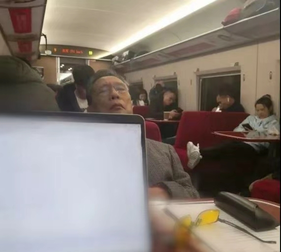 1月18日,84歲的鐘南山從廣州出發趕往武漢。當天航班已買不到機票,他擠上了17點開往武漢的高鐵列車。由于春運高鐵票緊張,他被安頓在了餐車一角,剛一落座便拿出文件研究。23點左右到達武漢住處,簡單聽取了武漢方面的情況后才結束一天的工作。