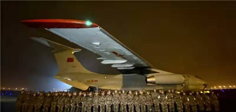 1月24日晚,由陸軍軍醫大學抽調精干醫務人員組建的醫療隊在重慶江北國際機場停機坪集結,準備連夜馳援武漢。