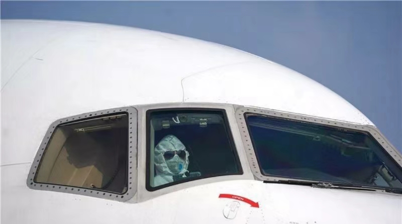 1月28日,在武漢天河國際機場,一架貨運飛機駕駛員將飛機停至卸貨區。
