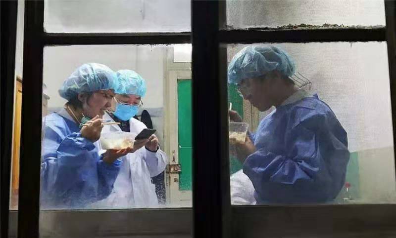 1月24日晚,蘭州大學第一醫院的一線醫護人員在吃年夜飯。