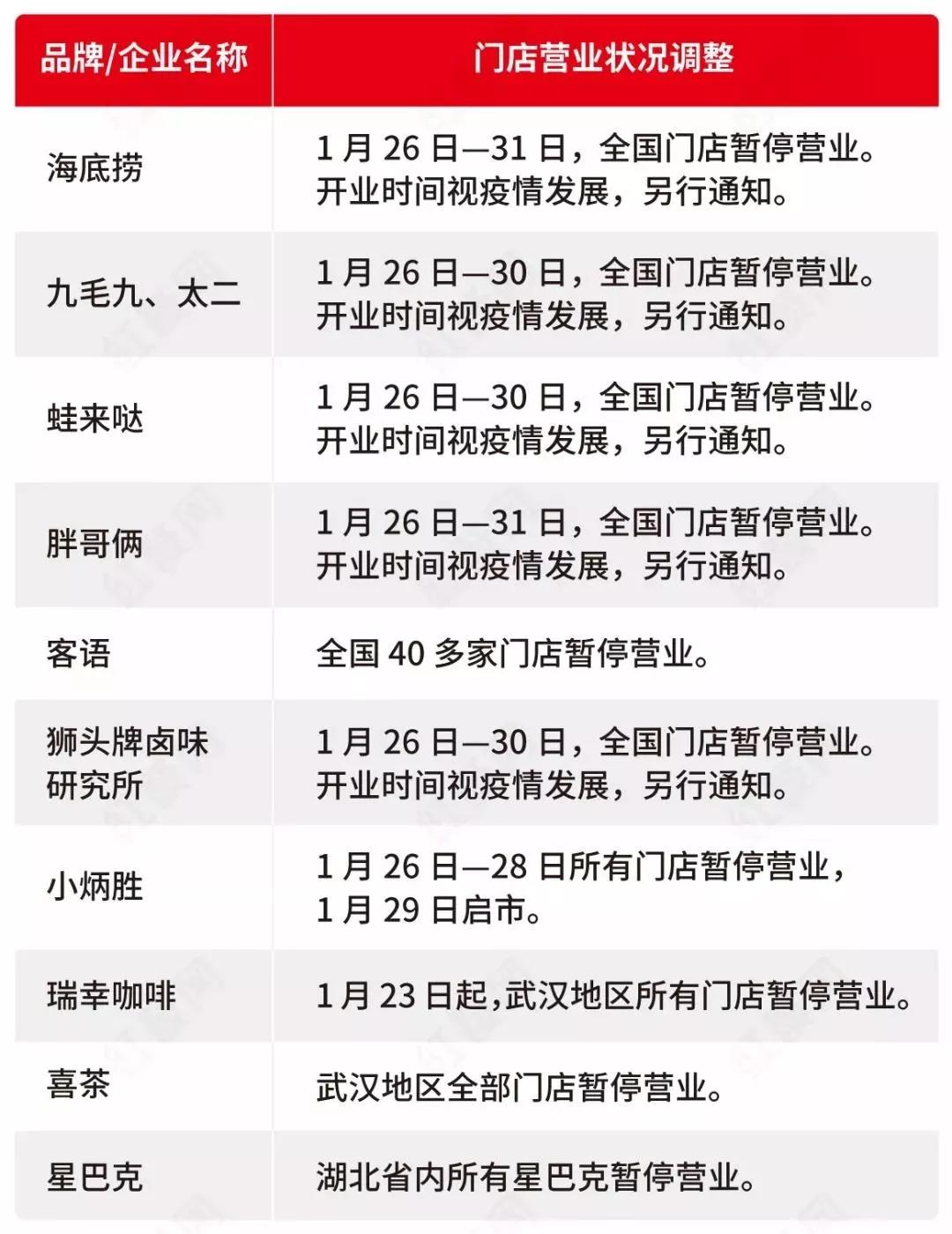 據(jù)媒體不完全統(tǒng)計(jì),海底撈、九毛九、太二、蛙來(lái)噠、胖哥倆、客語(yǔ)等品牌已經(jīng)宣布全國(guó)門店暫停營(yíng)業(yè),具體開(kāi)業(yè)時(shí)間另行通知。