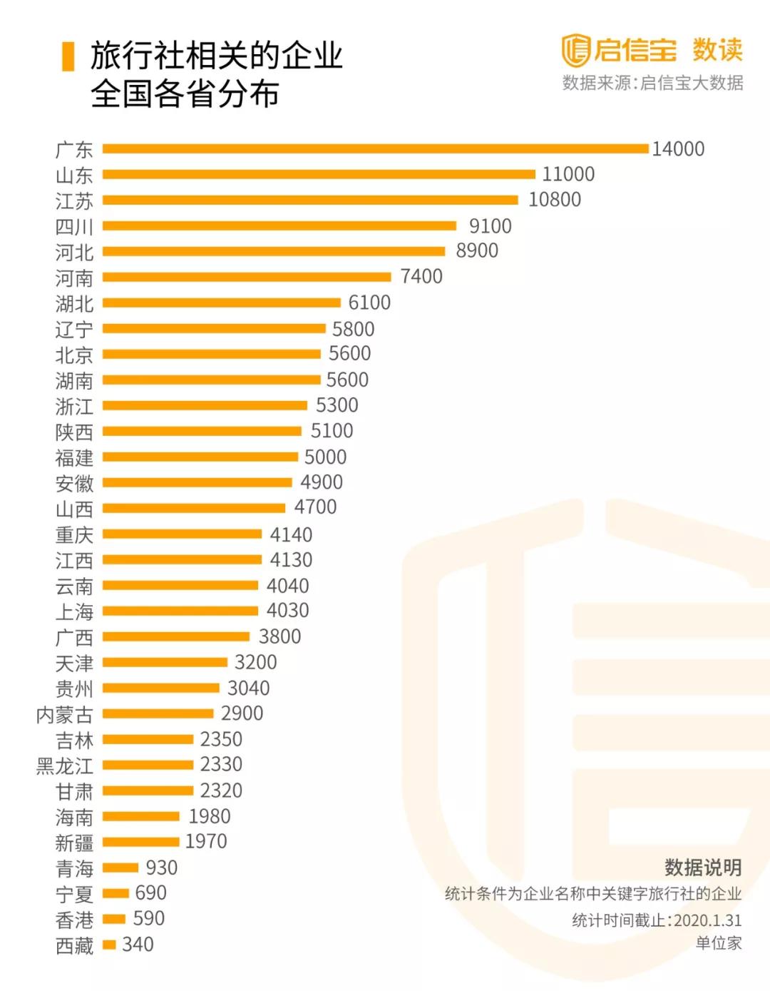 那么今年,根據(jù)啟信寶的數(shù)據(jù)統(tǒng)計(jì),全國(guó)共有153529家有旅行社業(yè)務(wù)的企業(yè),其中廣東、山東、江蘇分別數(shù)量為前三,可能損失會(huì)相對(duì)較大。