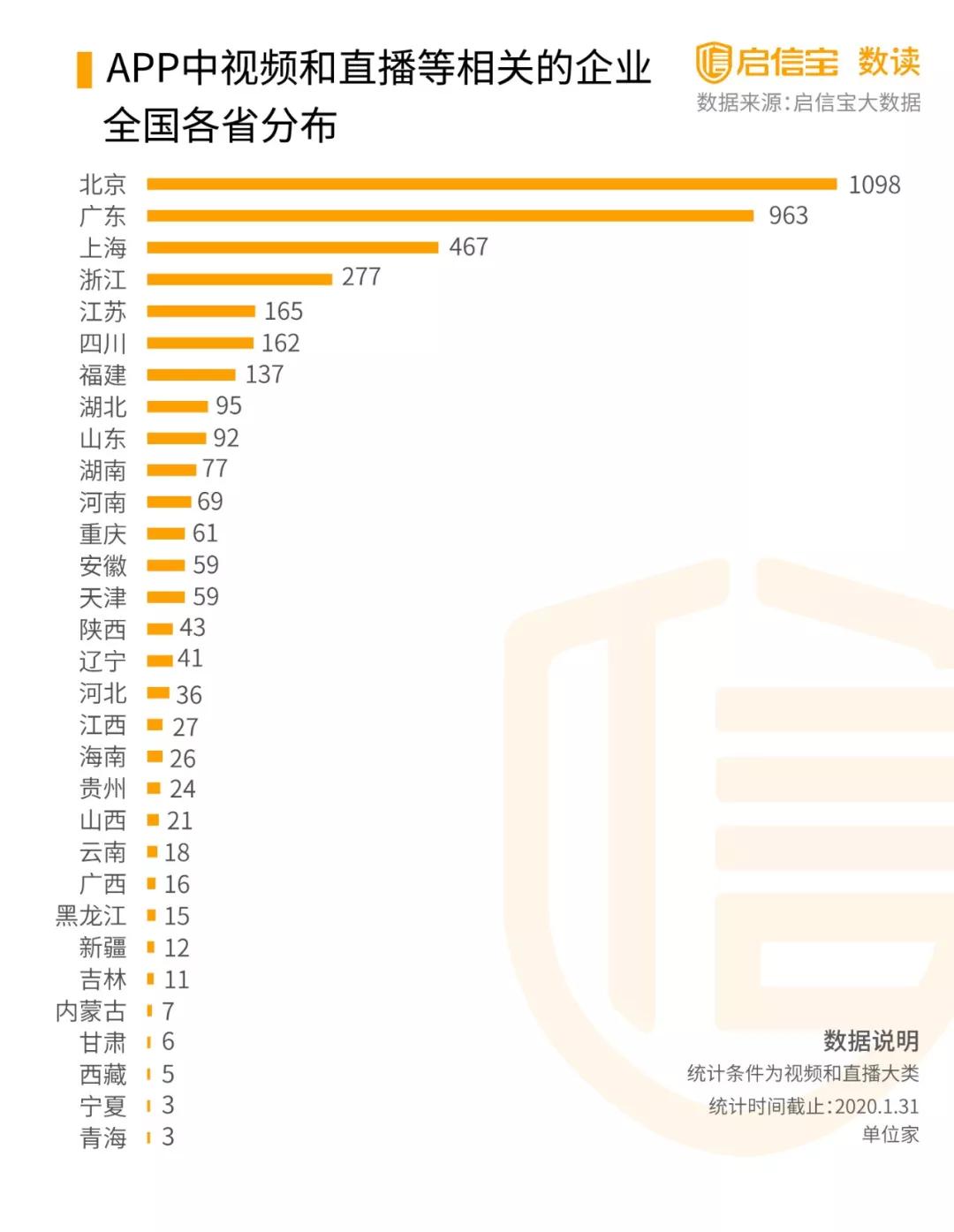 根據(jù)啟信寶數(shù)據(jù)統(tǒng)計(jì),全國(guó)共有4132家有視頻業(yè)務(wù)的企業(yè),其中北京、廣東、上海分別數(shù)量為前三,可能受益會(huì)相對(duì)較大。