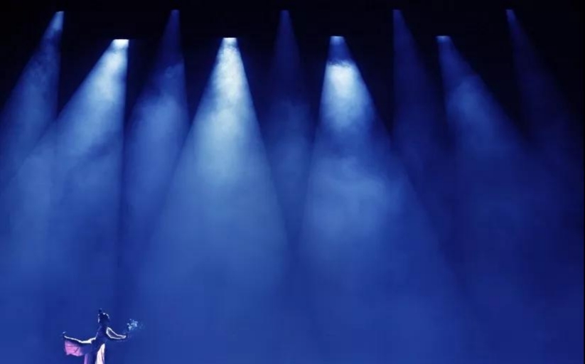 舞臺的藍色光打在演員的紅色衣服變成了紫色調