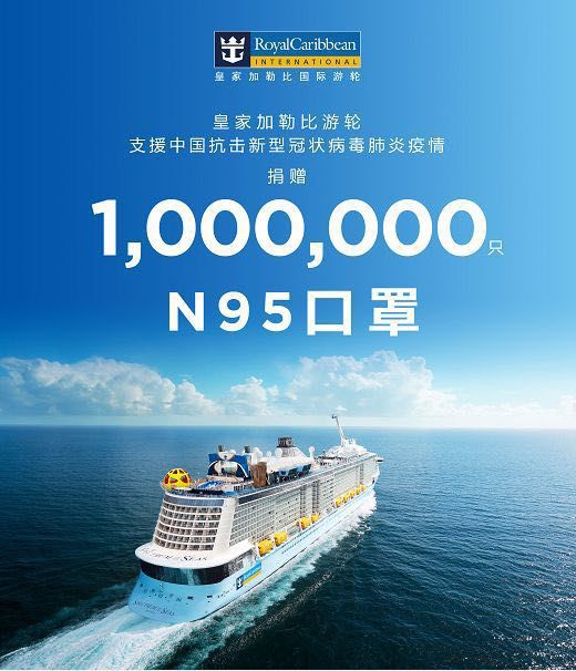 2月15日,皇家加勒比郵輪宣布捐贈1,000,000只 N95防護口罩,供政府分發(fā)到受疫情影響的地區(qū);