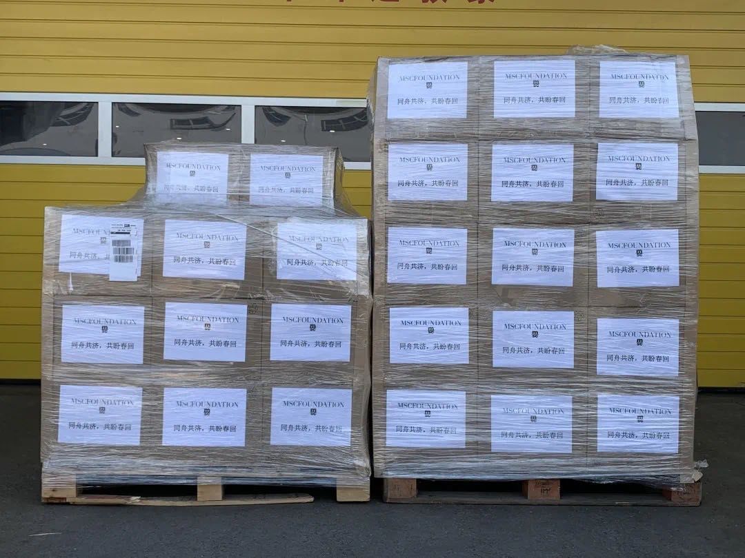 2月23日,MSC 地中海郵輪基金會采購的首批醫(yī)療物資100,000只歐標醫(yī)用口罩抵達北京,交由中國交通運輸部馳援湖北。