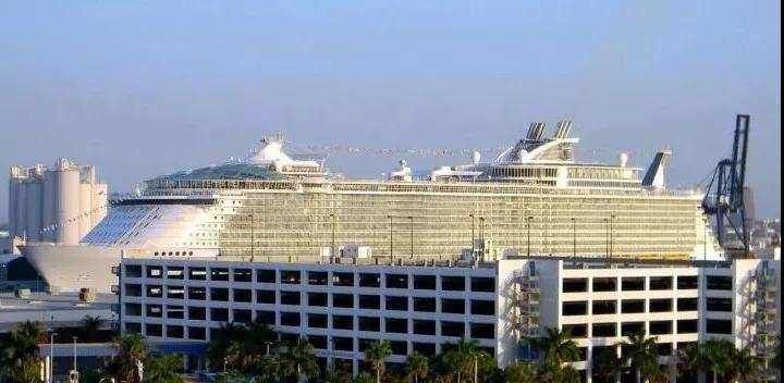 像皇家加勒比的海洋綠洲號,長約360米,寬約47米,吃水線以上高約65米,共16層甲板,而郵輪最低層甲板在五層