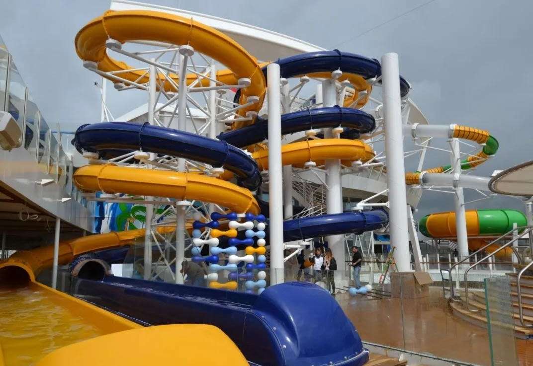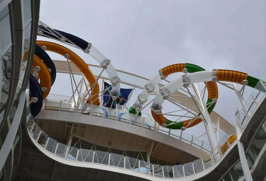 “海洋和諧號”是第一艘考慮到滑水道設(shè)計(jì)的皇家加勒比郵輪。2016年1月,皇家加勒比在“海洋自由號”上進(jìn)行滑水道測試,然后在海洋和諧號上實(shí)現(xiàn)。