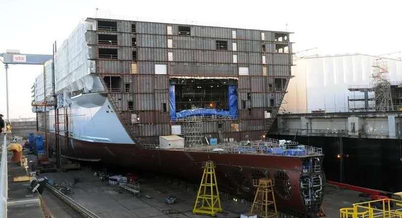 作為造船人,對最大郵輪的偏好是不言而喻的。因?yàn)榇笫鞘艿胶芏嘁蛩叵拗频?,有技術(shù)上的,現(xiàn)有規(guī)范方面的,也有設(shè)備條件和自然條件的限制。所以,海洋綠洲級郵輪,只在芬蘭土爾庫的船廠(現(xiàn)在的MEYER Turku)和STX法國船廠(STX France)(現(xiàn)在的法國大西洋船廠Chantiers de l’Atlantique)建造過。著名的德國邁爾船廠(Meyer Werft) 由于位于埃姆斯河下游,2002年9月之后船只可以通過的水深才達(dá)到8.50米,寬度為63.5米。而海洋綠洲級郵輪的最大寬度為66米。法國大西洋船廠為了建造海洋綠洲級郵輪,也專門添置了設(shè)備。