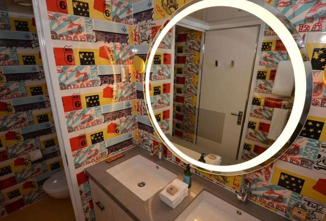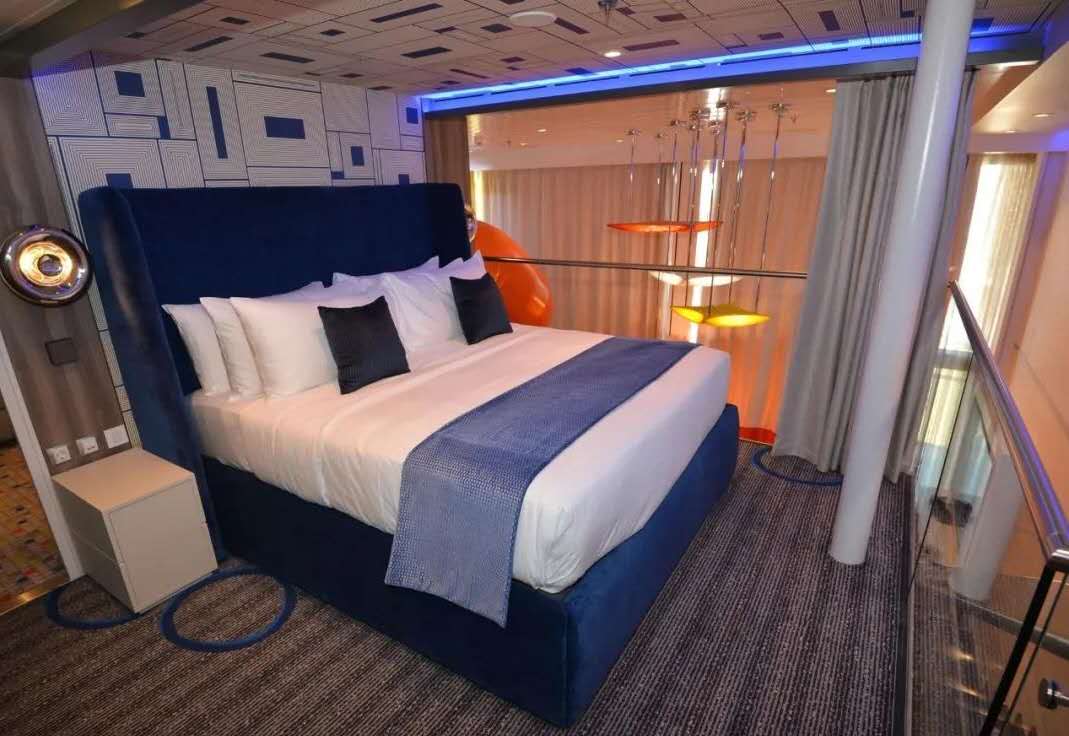 皇家加勒比公司希望通過手機登船系統和面部識別軟件來改善乘客的登機過程。一旦上了船,乘客會發現一些改進,包括增加的14個陽臺艙和14個可以俯瞰中央步行路區域的船艙,以及一個新的內部艙的虛擬陽臺屏幕系統。最引人注目的是皇家加勒比的第一套兩層甲板高、1,346平方英尺的終極家庭套房(The Ultimate Family Suite)。最終的家庭套房是船上最大的套房之一,并以家庭友好的設施自助餐為特色,套房最多可容納八人,包括從孩子們臥室 (upper level) 到樓下的客廳設有室內滑梯 ,地板到天棚的樂高積木墻,桌上冰球, 2 掛蛋式秋千椅,一間電視電影室 (3D movies, 爆米花機, 媒體書庫, 視頻游戲控制臺 )和一間小廚房。陽臺(sized 20 平方米 / 210 平方英尺)上有一個大臺球桌、一個小型攀巖墻和一個按摩浴缸。