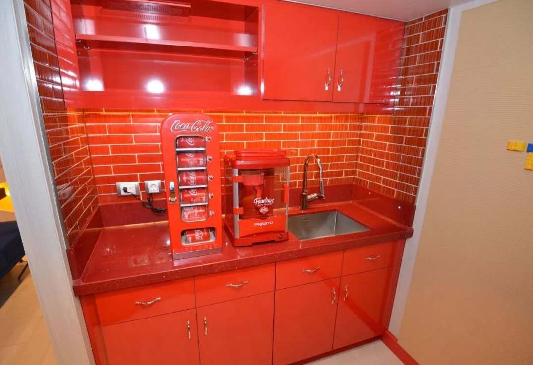一個獨立的電影院風格的電視房,配有爆米花機和一個電子游戲圖書館,也是終極家庭套房的一部分