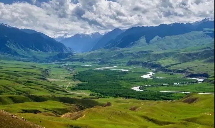 喀拉峻一闊克蘇風景區位于新疆維吾爾自治區西北部,特克斯縣的南部天山之中??菰挥诤0?000-3600米之間,是一個高山草甸草場,其南北寬約25公里,東西長40多公里,總面積達1000多平方公里??菰邓S富,氣候涼爽,土質肥厚,十分適宜牧草的生長。