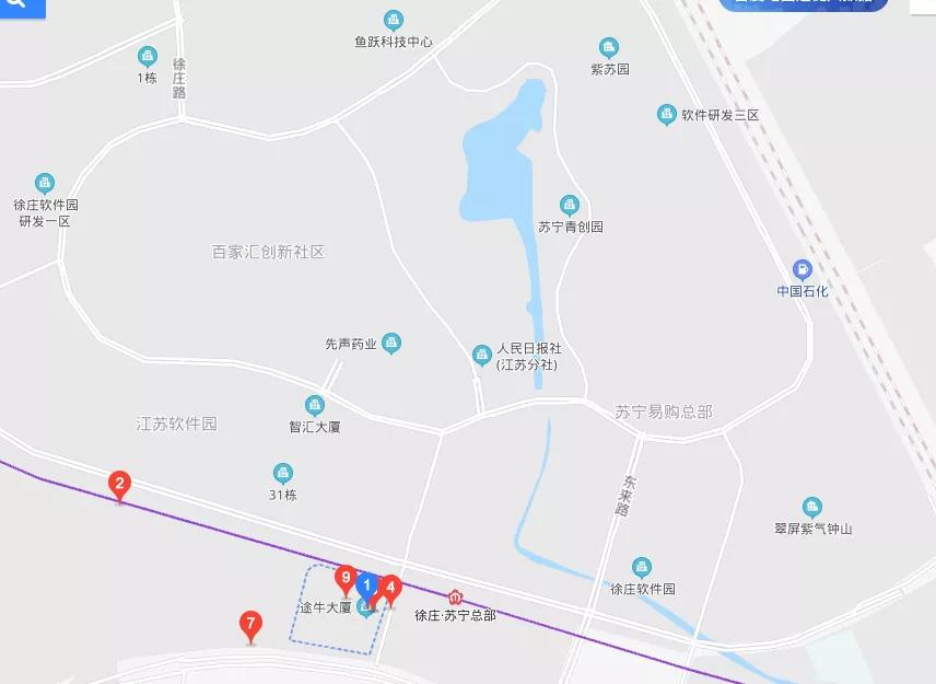 南京的途牛總部,毗鄰蘇寧總部,以及蘇寧易購總部和蘇寧青創園。