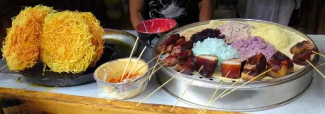 17、貴陽的風味小吃,著實令人垂涎。小吃街青云路、二七路、陜西路是較大的夜市。貴陽街頭巷尾的小吃攤點星羅棋布。貴陽最有名的風味小吃有腸旺面、戀愛豆腐果、雷家豆腐圓子、“絲娃娃”、花溪牛肉粉、畢節湯圓、花江狗肉、貴陽小吃值的品嘗,我們的口味以辣椒菜為主,首次到貴陽旅游的游客要根據自己的身體情況選擇一些適合自己腸胃的小吃,以免拉肚子和急性腸炎的發生。