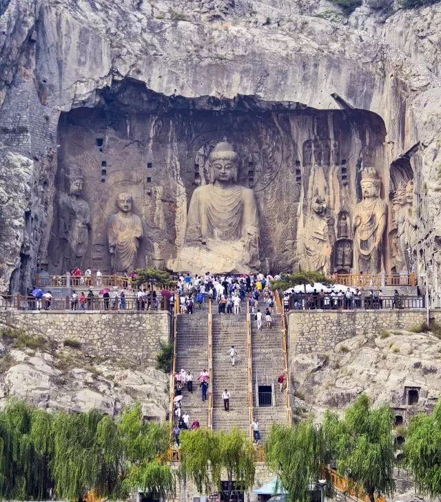 1、龍門石窟大型有規模的雕刻都位于龍門西山崖壁上,游客需借助臺階參觀游覽,游客在上臺階時注意安全,做到“走路不觀景,觀景不走路”。