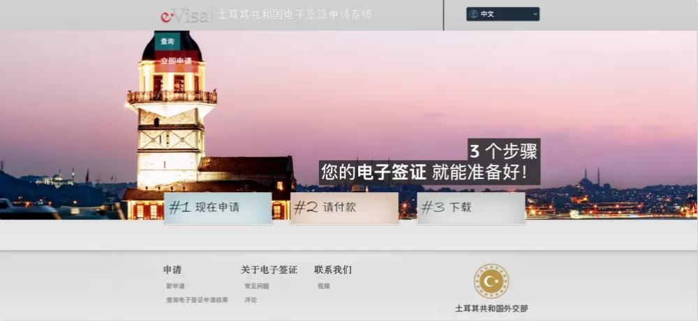 登錄土耳其共和國(guó)電子簽證申請(qǐng)網(wǎng)頁(yè):https://www.evisa.gov.tr/zh/
