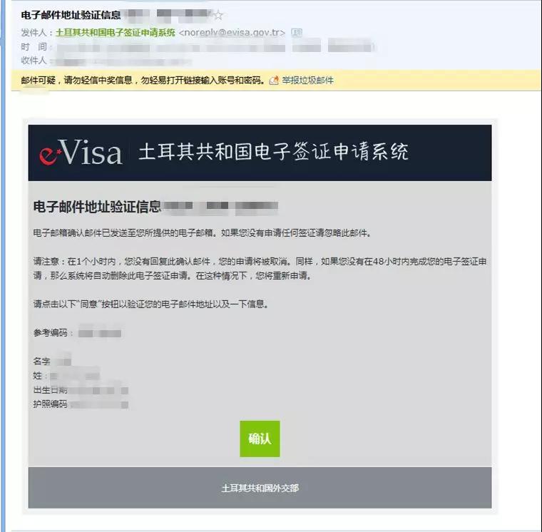 注:需要在1小時(shí)內(nèi)確認(rèn)此郵件,并在48小時(shí)內(nèi)完成電子簽證的申請(qǐng),否則簽證將被取消。