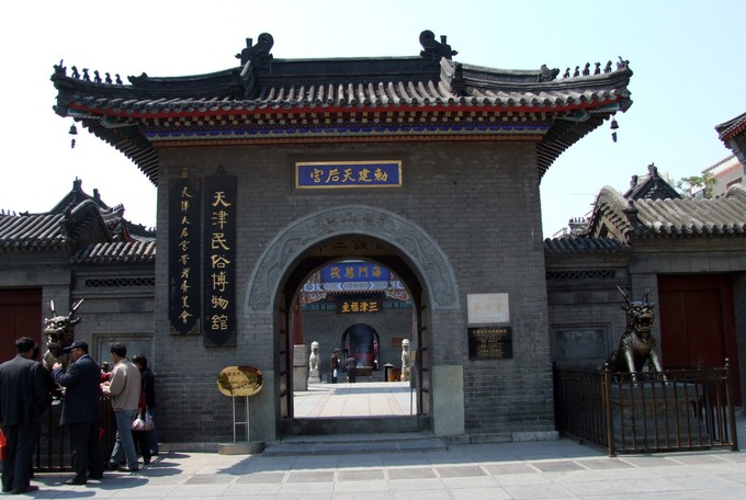 天后宮位于古文化街中心,也是古文化街古跡的核心,祭祀保佑出海遠航平安的天后娘娘,已有600余年歷史?,F在是天津民俗博物館的所在地,館內介紹了天津城歷史、民俗,陳列著明代天津城磚、清代漕運模型、清代水機等文物。