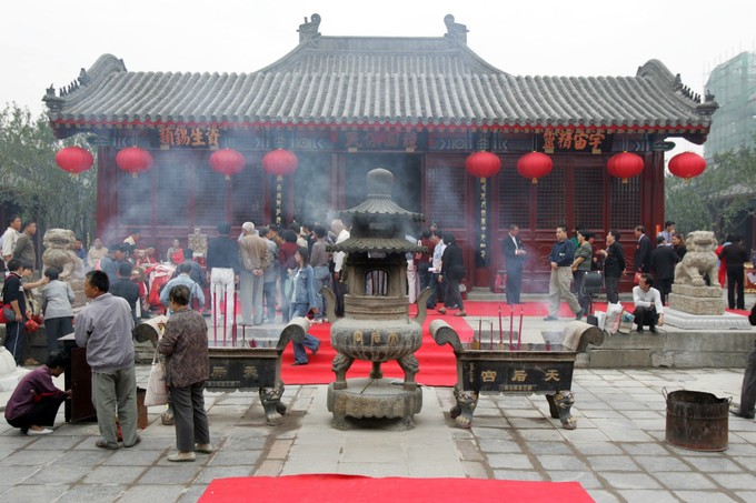 天津有一句老話:先有天后宮,后有天津衛??梢娞旌髮m在天津人心目中的地位。這是中國三大天后宮之一,也是天津現存最古老的建筑。天后宮實際是老百姓供奉天后娘娘的廟宇,俗稱“娘娘宮”。昔日,天后宮供奉主神,當然是天后娘娘。由于歷史原因,天后宮在漫長的歲月里,形成了佛道混雜、百神聚集的復雜情況。每年農歷三月二十三日,都會在此舉行盛大的“皇會”,表演龍燈舞、獅子舞、少林會、高踐、法鼓、旱船、地秧歌、武術以及京戲、評劇、梆子等。