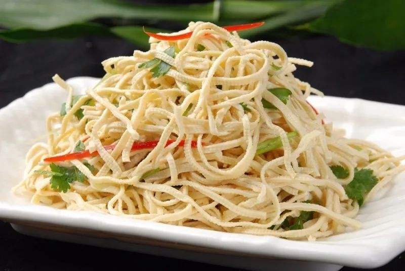高碑店豆腐絲,采用優(yōu)質(zhì)大豆,經(jīng)過篩選、浸泡、磨漿、煮沸、去渣、凝固、壓片、切絲、鹵煮、捆把10道工序制成風(fēng)味獨(dú)特的五香豆腐絲,是老幼皆宜、家肴游膳之佐餐佳品,有“素食之首”之美譽(yù)