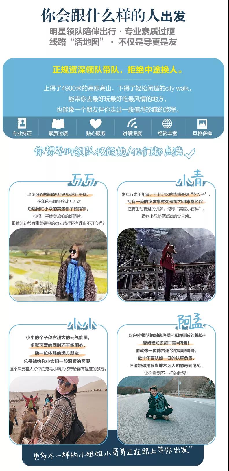 4、如途中遇不可抗因素(如高原反應、修路、塌方、車輛事故阻礙等)我方有權根據情況調整行程線路走向,此舉均是根據帶隊經驗為大家更順利的游玩而做出的改變,希望大家理解和支持,但如造成額外費用由客人自理,望您諒解;若對行程造成影響的,我方將全力協助游客進行解決,但不承擔由此造成的損失,若因此而增加的費用,敬請游客自理。