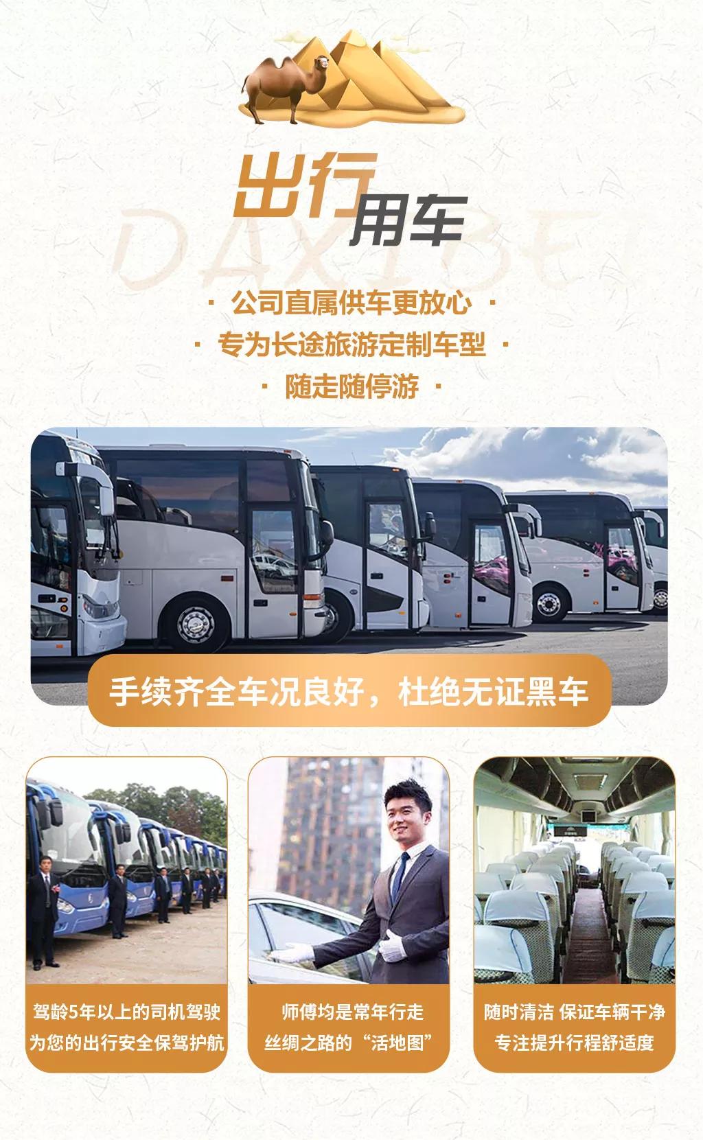 交通:全程正規(guī)空調(diào)旅游車出行,保證一人一正座位,車型大小根據(jù)實(shí)際人數(shù)安排,且由駕駛經(jīng)驗(yàn)豐富的司機(jī)為您的出行保駕護(hù)航,報(bào)價(jià)包含車費(fèi)、油費(fèi)、停車費(fèi)、維修費(fèi)及司機(jī)勞務(wù)費(fèi)。