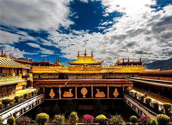 中午抵達拉薩,后乘車前往【大昭寺】(國家 5A 景區,游覽不少于 1 小時):是松贊干布為了迎娶唐朝文成公主,尼泊爾尺尊公主,建于公元 7 世紀中葉,距今 已有 1300 多年的歷史,屬國家重點文物保護單位。大昭寺主殿供奉的主尊為文成 公主入藏帶來的釋迦牟尼 12 歲等身鎏金銅像。此寺是藏民心靈中最神圣之處,隨 處可見五體投地的虔誠藏人頂禮膜拜,晚餐后入住酒店。