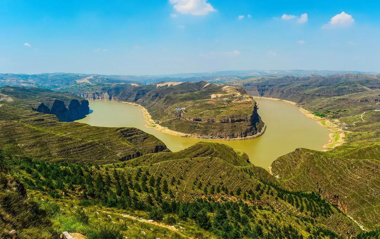 早餐乘車約2小時左右赴【乾坤灣】,自理項目電瓶車60元,乾坤灣S型大轉(zhuǎn)彎它形如太極陰陽魚 ,環(huán)抱郁郁蔥蔥的青山。在乾坤亭內(nèi)極目眺望,形似太極圖的乾坤灣盡收眼底。彎道弧度320度以上,堪稱天下黃河第一灣 。山上住著人家 ,炊煙裊裊。岸邊的草灘上, 一 群黃牛正在河邊飲水。乾坤灣不僅壯美 ,還是一幅黃土高原的生活圖畫 。延川黃河蛇曲是如今中國干流河道蛇曲規(guī)模最大、最好、最密集的蛇曲群,是罕見的景觀。它由北而南地延伸,依次是:漩渦灣、延水灣、伏寺灣 、乾坤灣、清水灣。