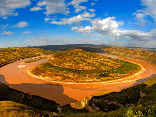 位于“黃河蛇曲國家地質(zhì)公園”內(nèi),如同神話傳說中玉皇大帝在天廷丟落在黃土高原丘陵溝壑區(qū)的"河圖"和"洛書",她酷似天地造化的天然太極圖。
