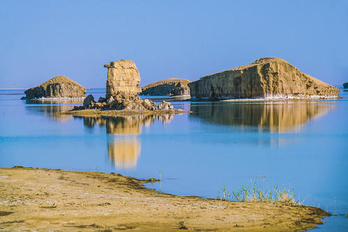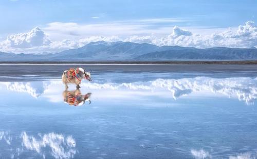 【茶卡鹽湖】被國家旅游地理雜志評為“人一生必去的55個地方”之一,這里的采鹽歷史非常悠久,湖水含鹽量很大,湖面上會自然結晶,一片純白。結晶之上是一層薄薄的露水,將天空、云朵和對岸的山都倒映在白色的湖里,非常漂亮,所以也被稱為“中國的天空之境”。大家可以乘坐景區內的小火車前往景區深處游玩,如果不乘坐小火車,沿著鐵軌向湖深處散散步拍拍照片也是非常愜意的。