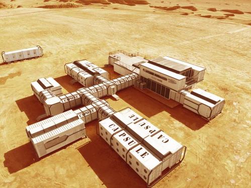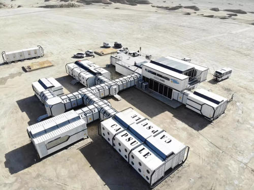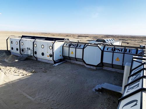 在這片“地球上最不像地球的地方”,以科學、科普和科幻為核心, 中國首個研學火星模擬基地——“火星營地”拔地而起。該項目斥資1.5億,營地建設風格模擬未來人類移居火星后的生存環境,搭建有“總部大樓”“火星艙”等,和周圍的山色融為一體,就像曾經在電影中出現的場景,來到營地的所有人都能身臨其境地體驗到居住在火星的狀態,不由自主地想盡快進入生存挑戰角色,完成“火星移居”的課題研究。