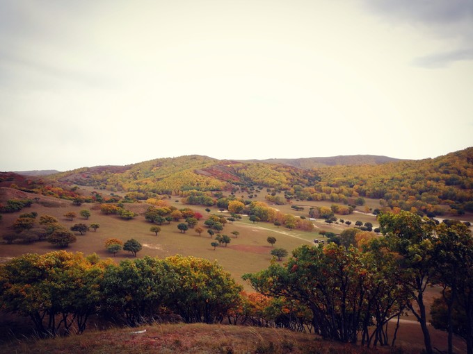 蛤蟆壩位于河北與內(nèi)蒙古交界的克旗烏蘭布統(tǒng)境內(nèi),是一塊高起的平緩坡地,三邊是“溝”或低地。 --這里地貌獨(dú)特,秋天景色絢麗多彩,漫山遍野的紅葉,流金溢丹,簇簇紅葉中,明黃的白樺葉融合在一起,匯成一幅幅渾然天成的圖畫。 --山坡下,溝膛里,依山就勢(shì),散落著幾十間茅屋草舍和新蓋的紅磚瓦房。雞鳴犬吠,炊煙裊裊,很有一種古樸原始的田園風(fēng)味。 --山頂是一片白樺樹,山腰是一塊塊不規(guī)則的梯田,山麓是三三兩兩姿態(tài)優(yōu)美的老榆樹,樹木間隙是木柵圍成的或圓形或矩形的羊圈、牛欄。 --在攝影人眼中,這是一個(gè)百拍不厭、常拍常新的攝影創(chuàng)作“寶地”。
