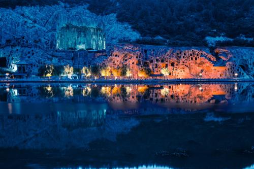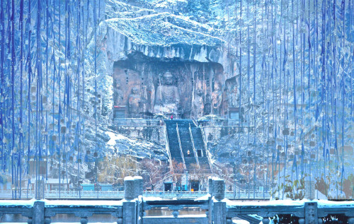 龍門石窟位于河南省洛陽市區(qū)南面12公里處,是一個風(fēng)景秀麗的地方,這里有東、西兩座青山對峙,伊水緩緩北流。遠遠望去,猶如一座天然門闕,所以古稱“伊闕”。自古以來,為游龍門的第一景觀。