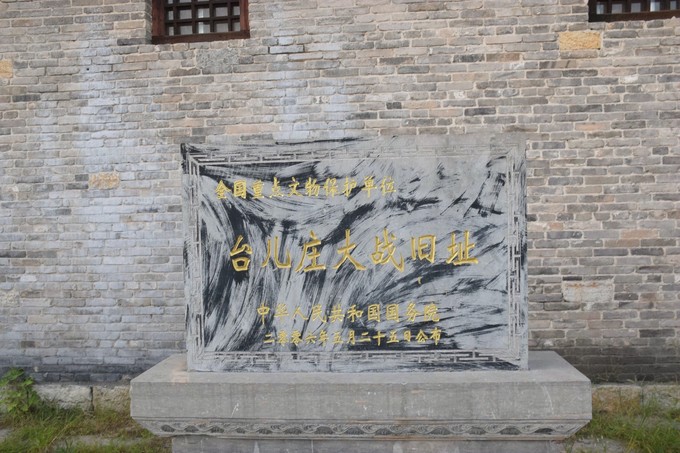 臺兒莊大戰遺址公園,位于臺兒莊古城較熱鬧地段,遺址公園內保存有幾座臺兒莊大戰時的老宅,老宅墻壁上的累累彈孔默默訴說著當年戰爭的殘酷性,也是講述臺兒莊大戰及緬懷中華民族一寸山河一寸血不屈的抗戰精神的圣地所在。臺兒莊大戰遺址公園也是各旅行團游覽的第一站,因此,此地為臺兒莊古城景區內人氣最旺的景點所在,我想這也是為了緬懷革命志士,宣傳臺兒莊不屈不撓的抗戰精神。