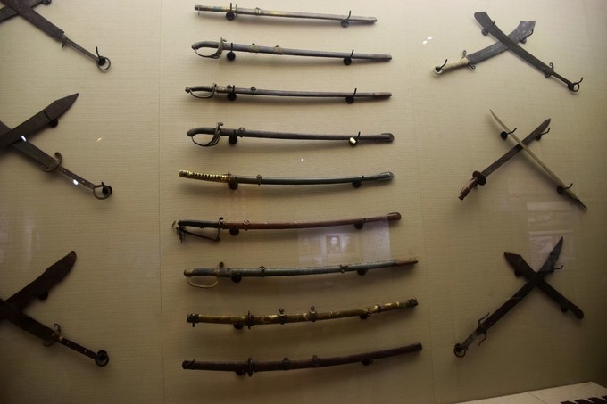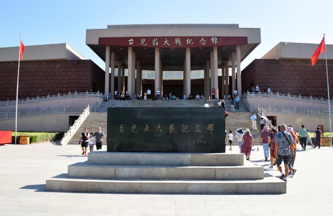 臺兒莊大戰紀念館,位于臺兒莊古城景區外。紀念館共有三個展室,書畫館和全景畫館,氣勢雄偉,莊嚴肅穆,館內陳列著臺兒莊大戰時中日雙方資料、文物千余件。展現了當年我抗日健兒在臺兒莊痛殲日軍、浴血奮戰、直至全勝的歷史過程。另外一個看點為紀念館外展示的我軍退役的陸、空裝備。