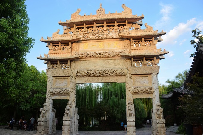 臺兒古城打卡的必游之地,此處有臺兒莊古城西門城樓及城樓上“天下第一莊”牌匾,另外護城河邊還有“世界文化遺產-中國大運河”的標志碑。進入西門直行不遠處便是“天下第一莊”牌坊,這幾處都是臺兒莊人氣最旺的打卡地。