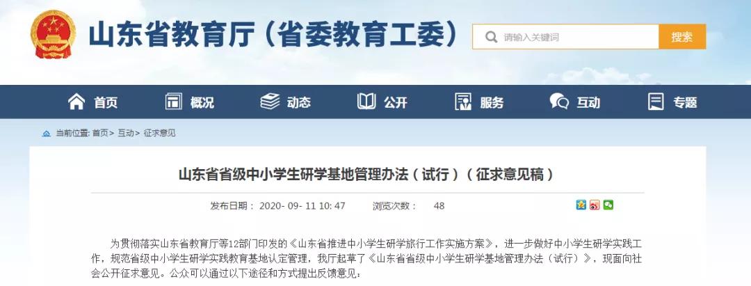 第二條 山東省省級研學基地是指經省教育廳聯合省發展改革委、省文化和旅游廳等部門評議認定,以優秀傳統文化、革命傳統、國情、國防科工和自然生態教育為主要內容,面向中小學生開展研學實踐活動,具有較好引領示范作用的各類教育基地、自然和文化遺產資源、文化場館、大型公共設施、高等院校、科研機構、工礦企業等。