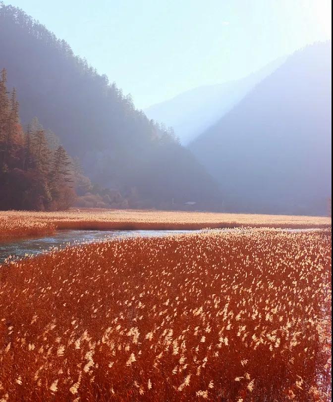 吃過精美的酒店自助早餐后我們驅車前往畢棚溝,途經汶川、米亞羅。米亞羅藏語譯為“好玩的壩子”,是中國發現并開放的面積最大的紅葉風景區之一,秋高氣爽時,這里連綿百余公里的彩林把大金川河谷點綴得五彩斑斕,沿路漸次經霜,驅車從彩林中間穿過,窗外流逝緋紅,靜謐而美好。