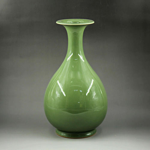 從釉色上看,典型的宋代龍泉瓷釉層較厚,釉色青翠,光澤柔和,釉層中有氣泡,分布大且稀。明代龍泉瓷釉層比較薄,玻璃化程度高,透明度好,表面光澤強,釉色或綠中帶棕,接近艾綠,或黃中帶灰,二者都很不悅目。