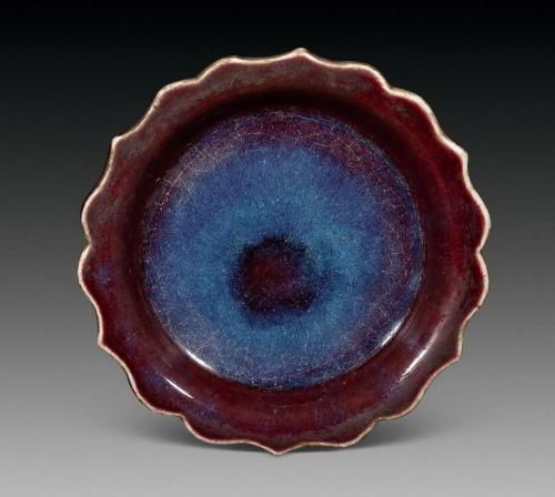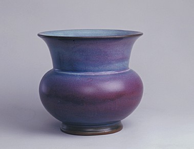 由于釉色的相互交融而產(chǎn)生的無數(shù)顏色不一、形狀各異的窯變,是構(gòu)成鈞瓷區(qū)別于其它青瓷的另一個特色。鈞釉中的紫色引人注目。各種紫色是紅釉與藍釉互相融合的結(jié)果。鈞釉的紫斑在工藝上是將青藍色的釉上有意涂上一層銅紅釉所造成的。后人對鈞瓷的紫色的評價極高,近人劉子芬在《竹園陶說》中說“鈞窯器一枚,價值萬金┅┅宋時紫色如熟透之葡萄,濃麗無比,紫定、紫鈞,其器皆純色。”