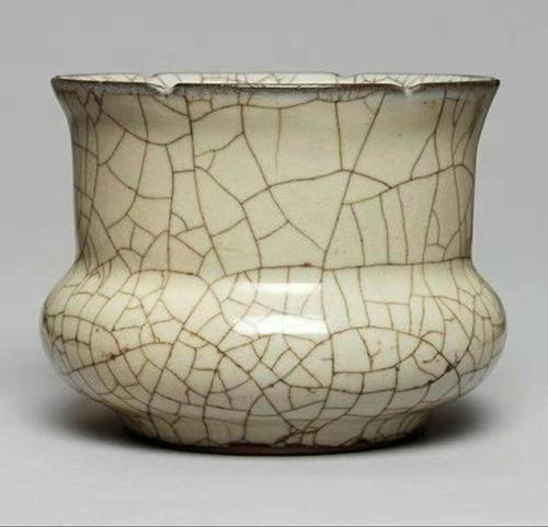 哥窯是宋代南方五大名窯之一,確切窯場到今尚沒有發(fā)現(xiàn)。據(jù)歷史傳說為章生一、章生二兄弟在兩浙路處州、龍泉縣各建一窯,哥哥建的窯稱為"哥窯",弟弟建的窯稱為"弟窯",也稱章窯、龍泉窯。有的專家認(rèn)為傳世的宮藏哥窯瓷,實(shí)際上是南宋時(shí)修內(nèi)司官窯燒制的。哥窯的主要特征是釉面有大大小小不規(guī)則的開裂紋片,俗稱"開片"或"文武片"。細(xì)小如魚子的叫"魚子紋",開片呈弧形的叫"蟹爪紋",開片大小相同的叫"百圾碎"。小紋片的紋理呈金黃色,大紋片的紋理呈鐵黑色,故有"金絲鐵線"之說。其中仿北宋官窯的瓷器為黑胎,也具有"紫口鐵足"。 哥窯瓷胎體有厚有薄,釉色主要有粉青、月白、米黃數(shù)種,釉面光澤如膚之微汗,是為上品。器形以洗、爐、盤、碗為多。