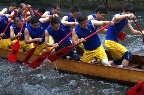 龍舟競度最早是古代南方吳越先民祭龍祖的一種祭祀活動形式,南方先民使用舟船普遍,往往在舟船畫上龍圖形作為部族的圖騰或保護(hù)神。扒龍舟是端午節(jié)的一項(xiàng)重要活動,故又稱龍舟節(jié)。